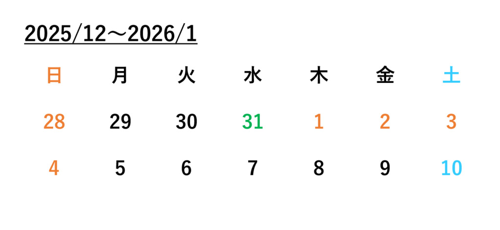 年末年始の休業日について(2025~2026)