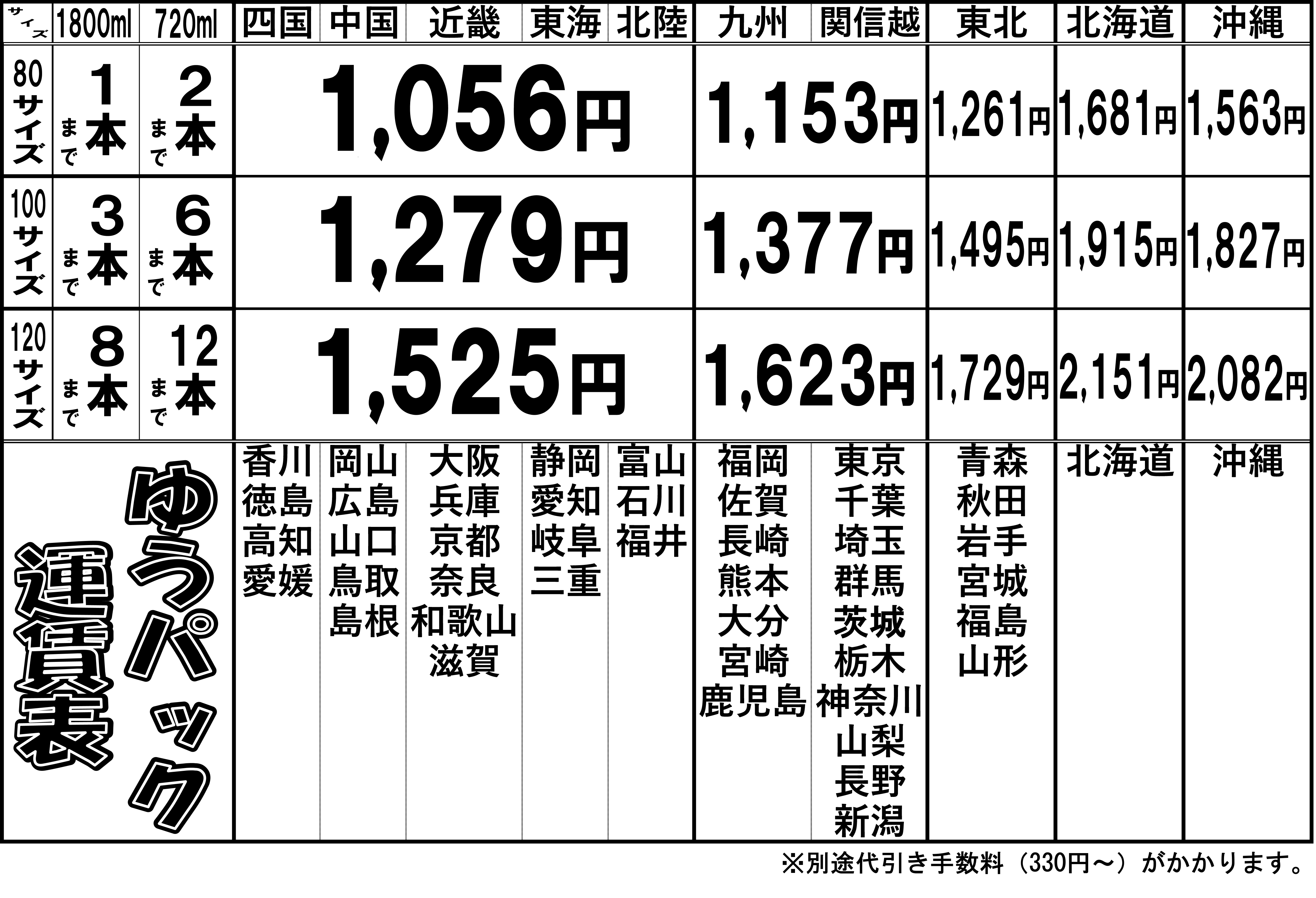 つきましては、大変申し訳ございませんが、送料を下記の通り改定させて頂きます。